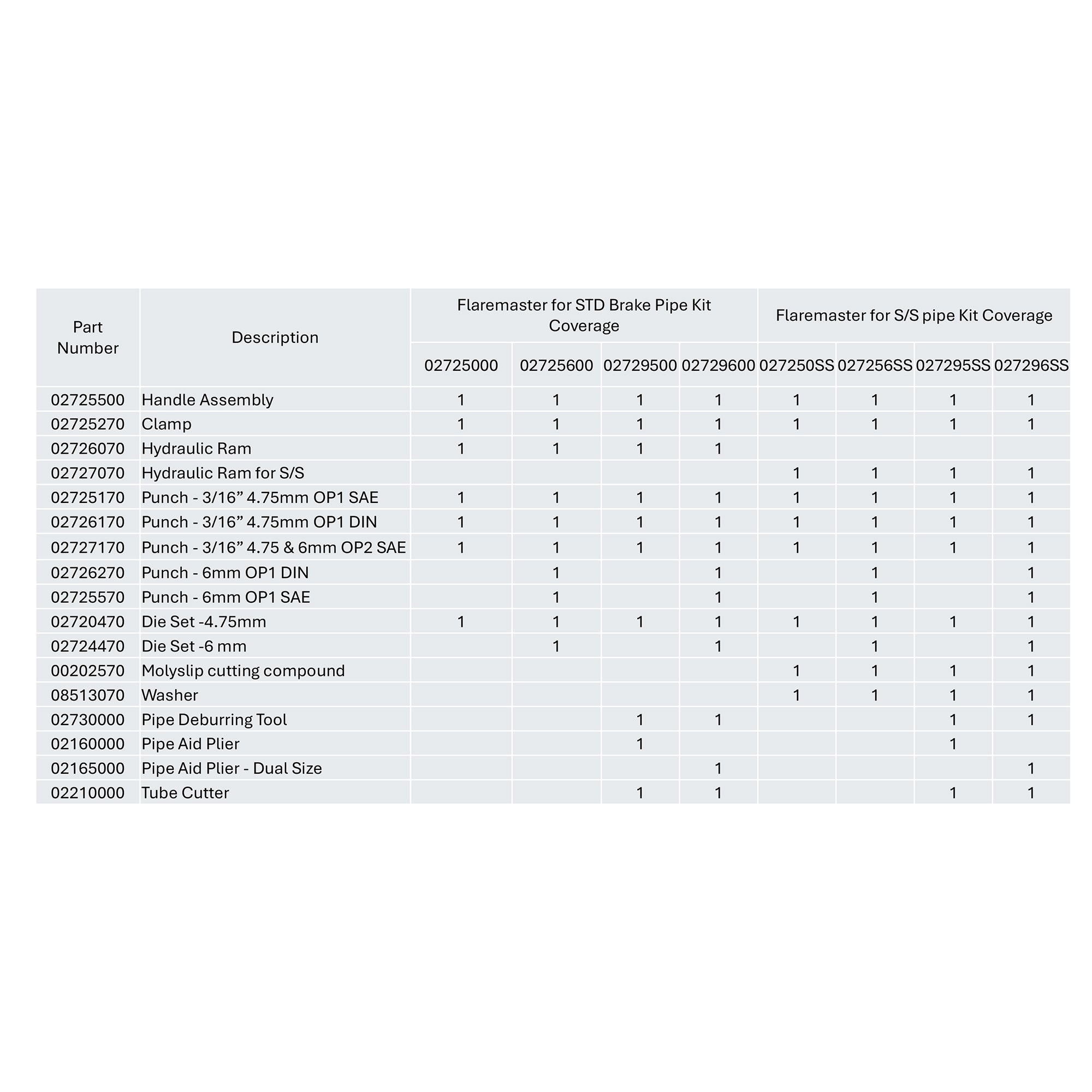 The 02727070 is designed for flaring stainless steel pipe, which is much more difficult to work with than standard cupro-nickel, copper or mild steel pipe. Flaring stainless steel brake pipes requires greater force and care in order to produce good results.