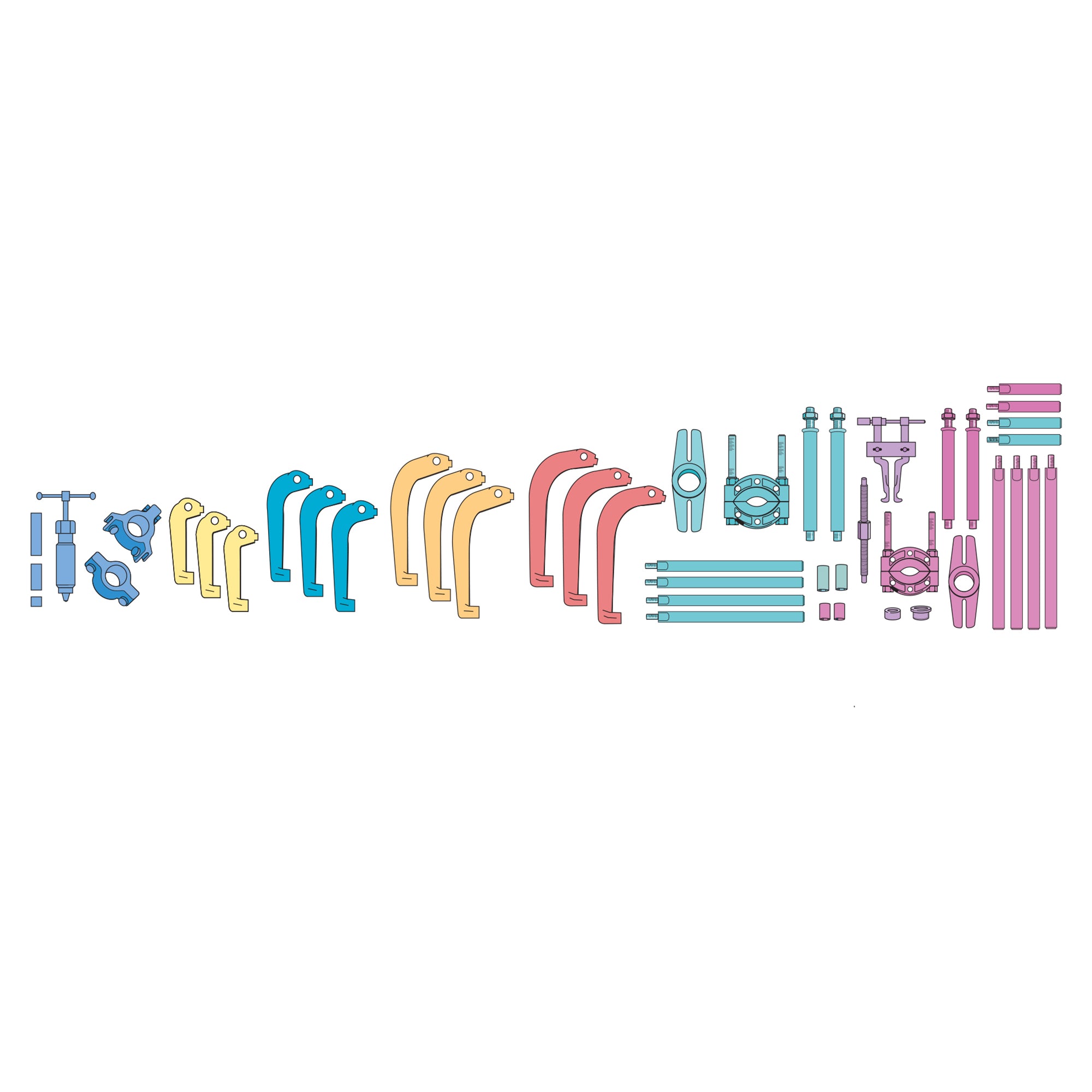 • Makes 8 different twin/triple leg pullers, plus heavy duty bearing separator kit and internal extractor kit