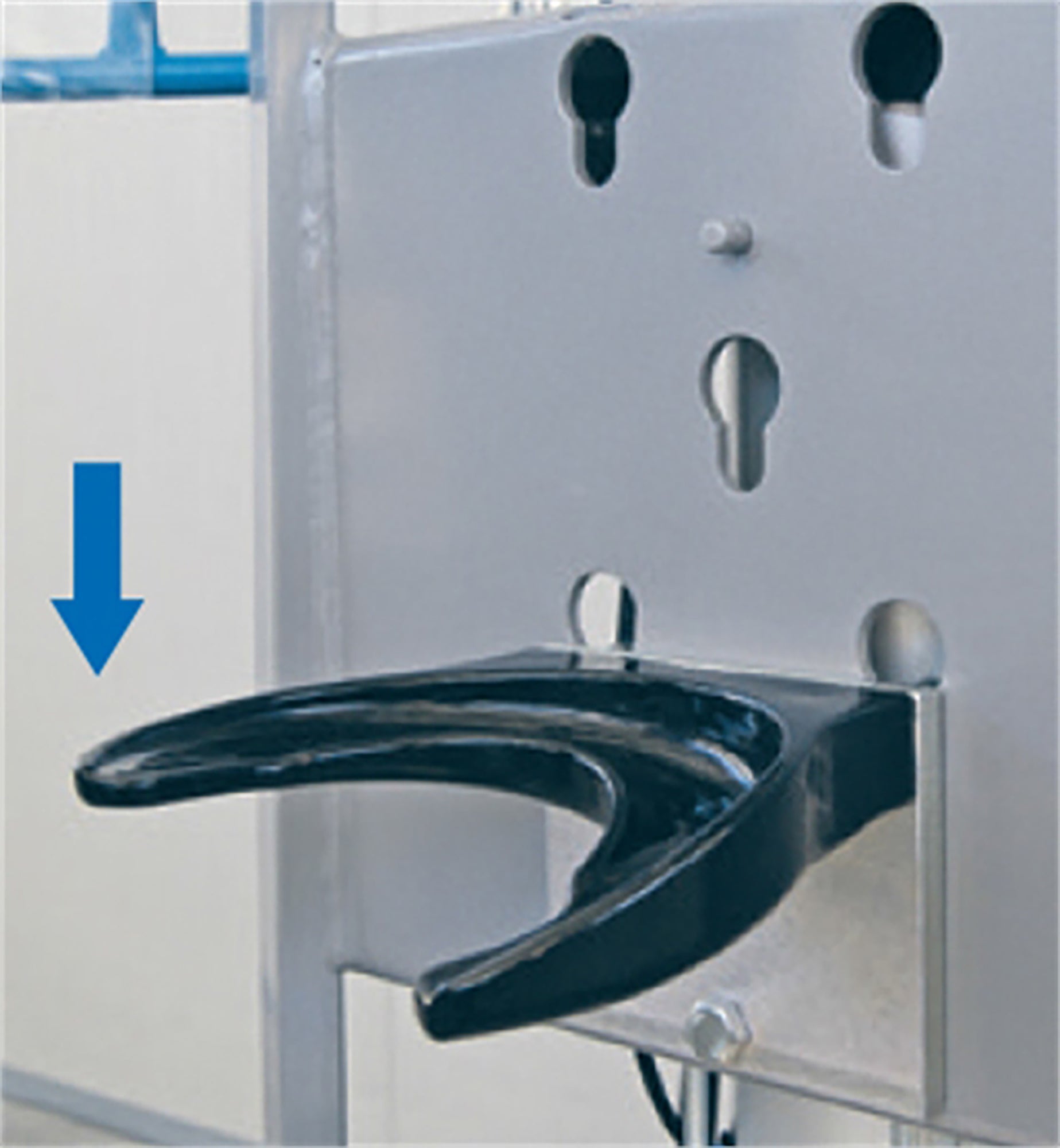 Mirror for viewing from above makes the piston rod easier to position during installation.