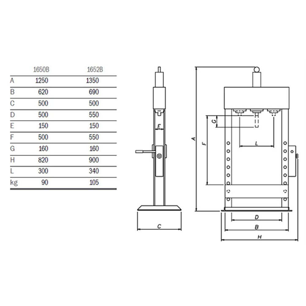 Hydraulic workbench press with moveable piston Double-speed hand pump Overload safety-valve Automatic return of the ram Chromium plated rod Pressure... Read more