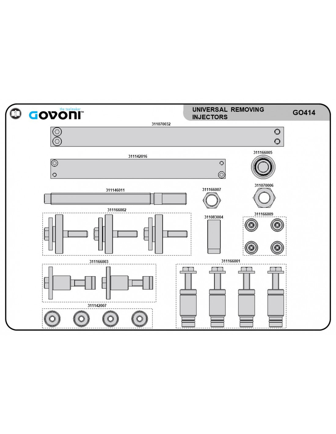 The Govoni GO414 Basic Kit is a high quality mechanical injector removal system, specifically engineered to safely and effectively extract stubborn injectors without causing damage to the cylinder head.